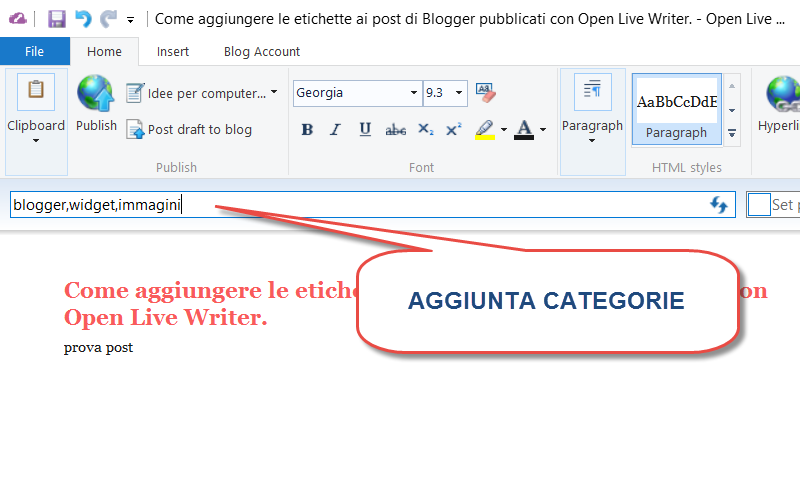 1.- Come aggiungere le etichette ai post di Blogger pubblicati con Open Live Writer.